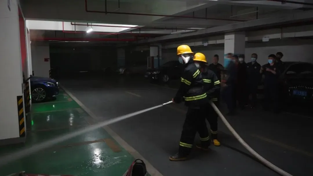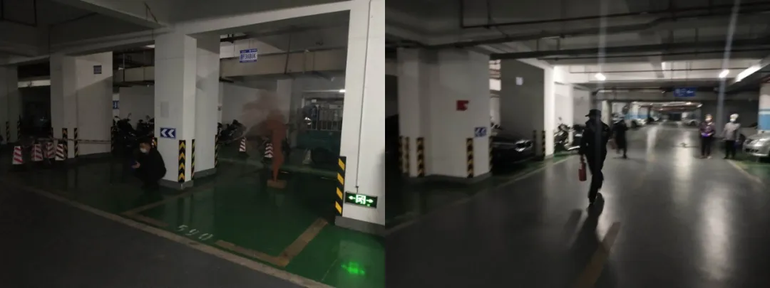 由于地下車庫停放的一輛老舊電瓶車充電時短路著火,火勢迅速蔓延,消控主機接到反饋報警,消控室立即通知巡邏崗人員,在1分鐘內第一滅火力量攜帶滅火器趕至現(xiàn)場,由于火勢太大,無法撲滅,立即向消控中心反饋,消控立即指令微型消防站隊員前去滅火,3分鐘內組成第二滅火力量,攜帶消防器材趕到火災現(xiàn)場進行滅火。同時,救援疏散組協(xié)調現(xiàn)場人員疏散、現(xiàn)場秩序維持工作,安撫好業(yè)主情緒,引導業(yè)主有序地從消防樓梯疏散至地面指定位置進行安置。